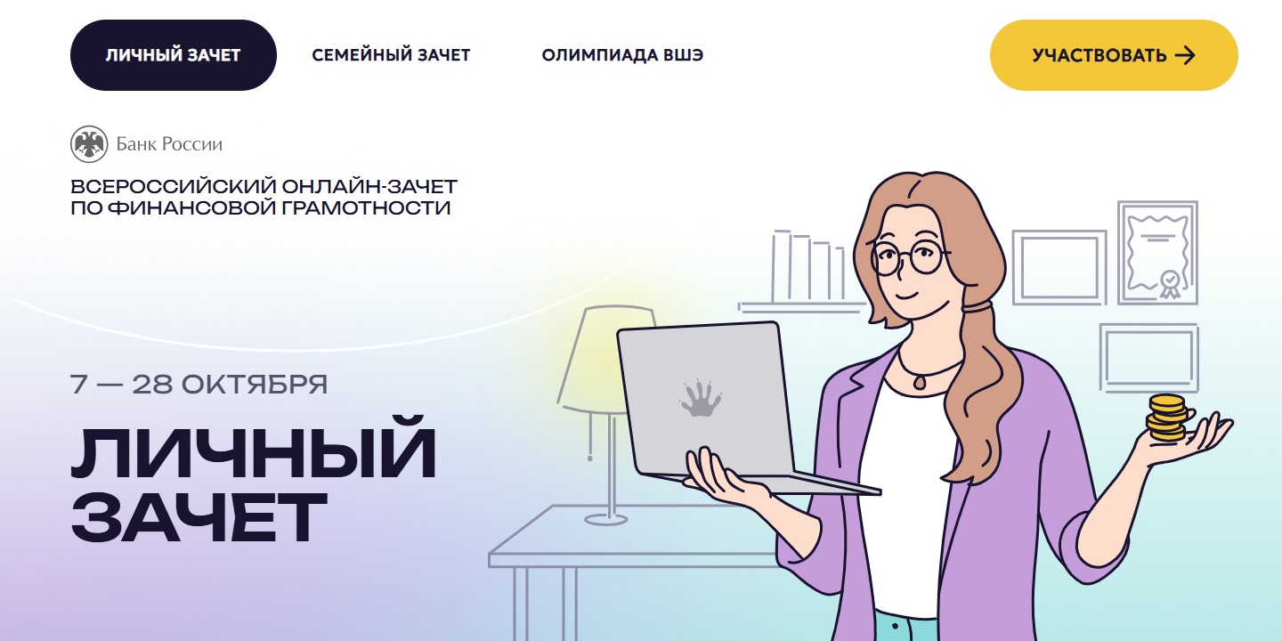 С 7 по 28 октября проходит Всероссийский онлайн-зачет по финансовой грамотности, который поможет ребятам оценить свой уровень знаний в этой области. Время прохождения занимает всего 20 минут. По окончании все участники получат по электронной почте именной сертификат. Если не устраивает результат, можно пройти онлайн-тест еще раз. Также каждому участнику предложат индивидуальные рекомендации — советы и подборки материалов к вопросам, которые вызвали трудности. Пройти онлайн-зачет можно на сайте https://finzachet.ru.