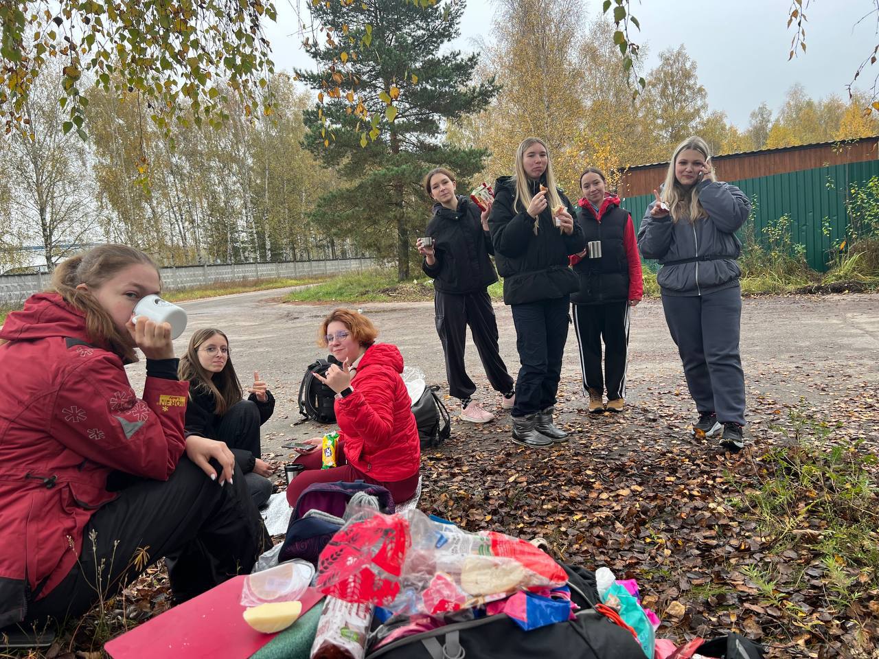 "Нас было 8: семь смелых туристов и преподаватель - Дмитрий Васильевич Хлыбов. По пути до Монино мы уже обсуждали каким путем пойдем, распределили еду и познакомились друг с другом. По прибытию, город сразу подарил приключения: мы прошли мимо легендарного Музея ВВС, там привлекли наше внимание огромные "вертолетные самолеты", или наоборот. По пути мы делали привалы, делились вкусняшками и подкреплялись чаем. Но главное испытание ждало на стоянке возле озера Леданово. Наш костер оказался невероятно упрямым и не хотел разгораться, и мы уже хотели перейти на газовую горелку, но не сдались! Вместе, с новым энтузиазмом и всеми оставшимися силами, мы победили костер и ветер, чем и заслужили свой наваристый, и по-настоящему сытный борщ. Под чутким руководством Дмитрия Васильевича, который объяснял все тонкости походной науки, мы справились на Ура! А самое главное — за один день мы успели не только преодолеть трудности, но и по-настоящему подружиться. Старые связи укрепились, а новые знакомства, мы уверены, перерастут в крепкую дружбу на долгие годы." - делится впечатлениями участница похода Храпова Вера.